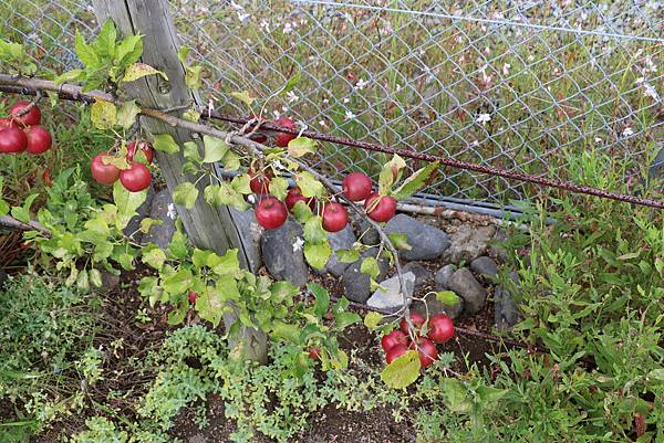 很好玩的是靠著鐵道的圍籬種了一整排的蘋果樹跟李樹