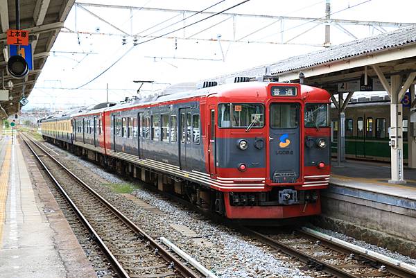 但是就在出站的那一刻 背後進來了115系的長野色!