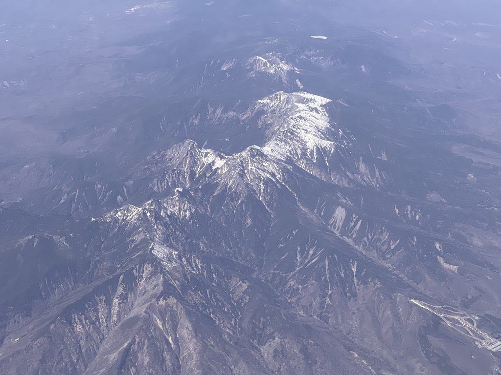 四月的山頭還是可以看到白雪靄靄的景致(應該是木曾山脈)