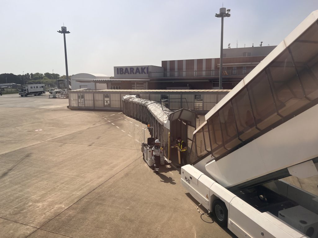 茨城空港算是近年才開始提供民用的機場,航廈非常的迷你,雖然沒有空橋但是這種貼心的設計也能讓人下飛機時不太受天氣影響
