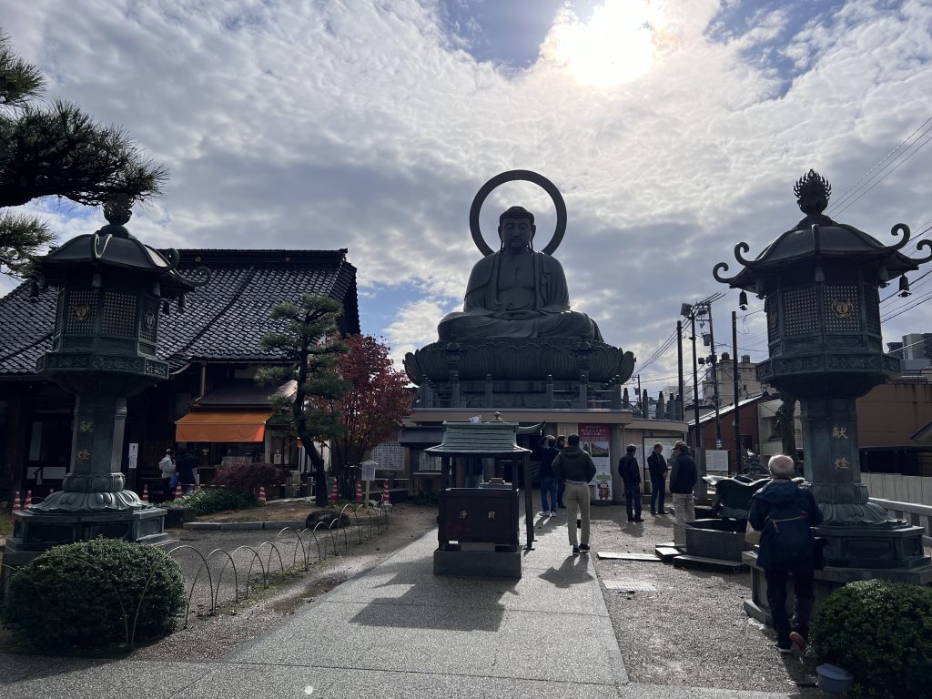 11月到訪,日中的太陽幾乎是逆光~大佛佇立在靜謐的住宅區中,參拜的人潮也算是絡繹不絕,大佛的底座有不少佛像跟佛教文物可以參觀
