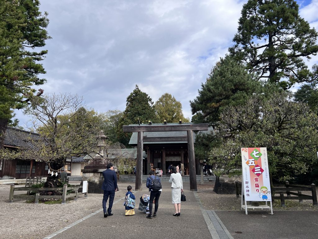 這天剛好在舉辦七五三參拜,神社內充滿了帶小孩子來參拜的家庭,每個家庭都是身著正裝然後父母自己或是請專門攝影師來拍照,這種溫馨和諧的畫面,身為旁觀者還蠻羨慕日本這種家庭和樂幸福的感覺