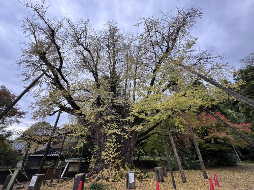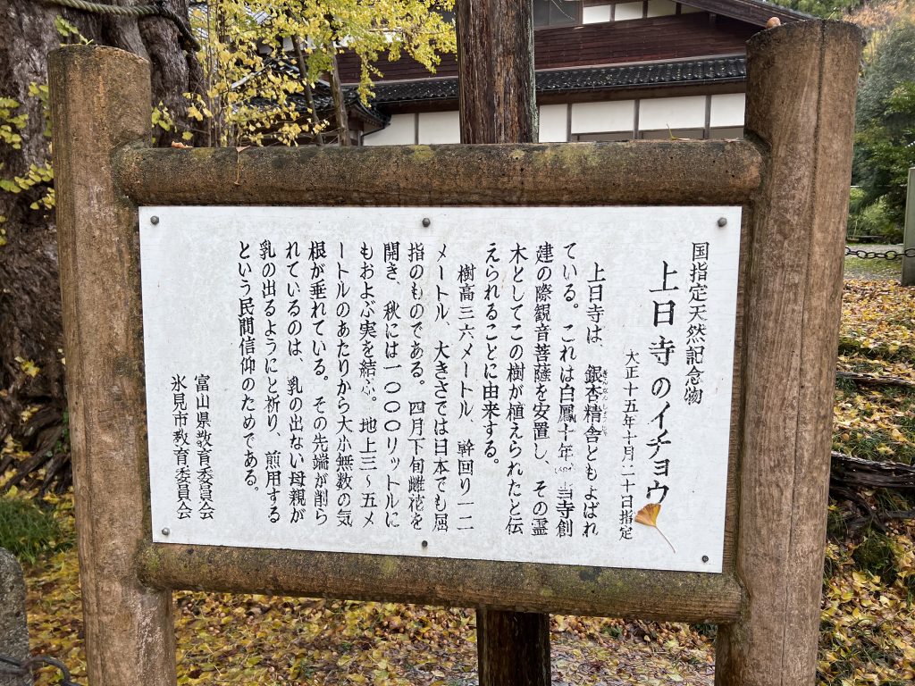 這次11月底到訪日本想著可以順帶欣賞一下銀杏跟楓葉,剛好在冰見的上日寺就有著一棵近千年的銀杏樹,非常的壯觀,剛好前面也有一棵紅線相襯,只可惜剛下過一陣雨,大雨之前想必是個難得的美景