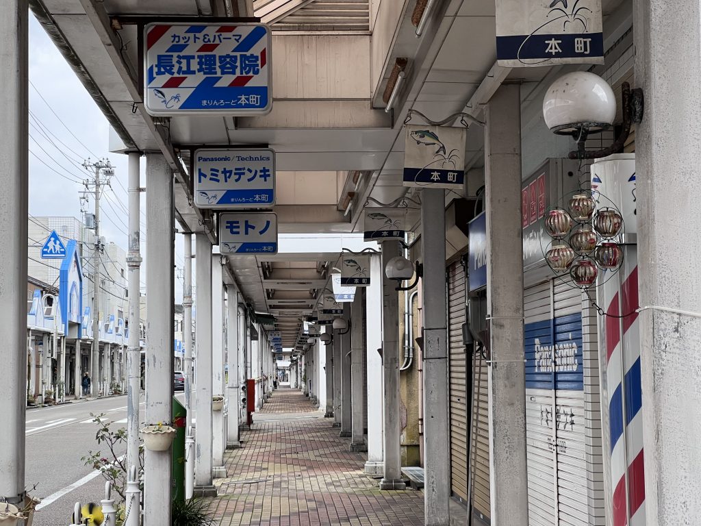 市區的商店街整條路上都是有遮雨棚的,只是這邊大概是沒落的原因吧,雖然看的出來沿路上有不少店家,但實際上有開門的沒幾間