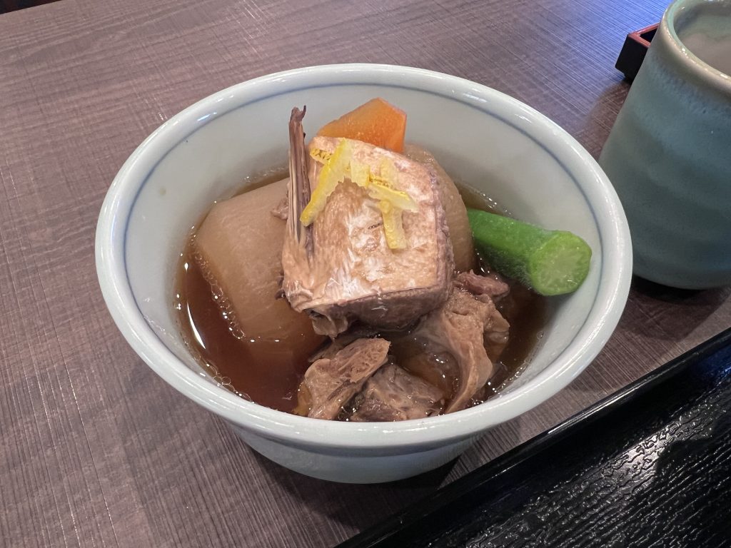 加點的鰤魚煮蘿蔔,好吃到不行!!鰤魚應該是用壓力鍋煮過連骨頭都能吃,蘿蔔吸滿了湯汁,溫和的味道很適合配飯~~