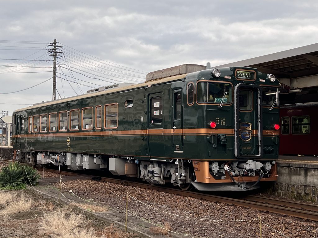 跟冰見線週日才有的べるもんた(瑰麗山海)觀光列車交會,可以參考JR西日本官網資訊,不同日期會在不同區間運轉,是同時能享受美食跟欣賞風景的觀光列車