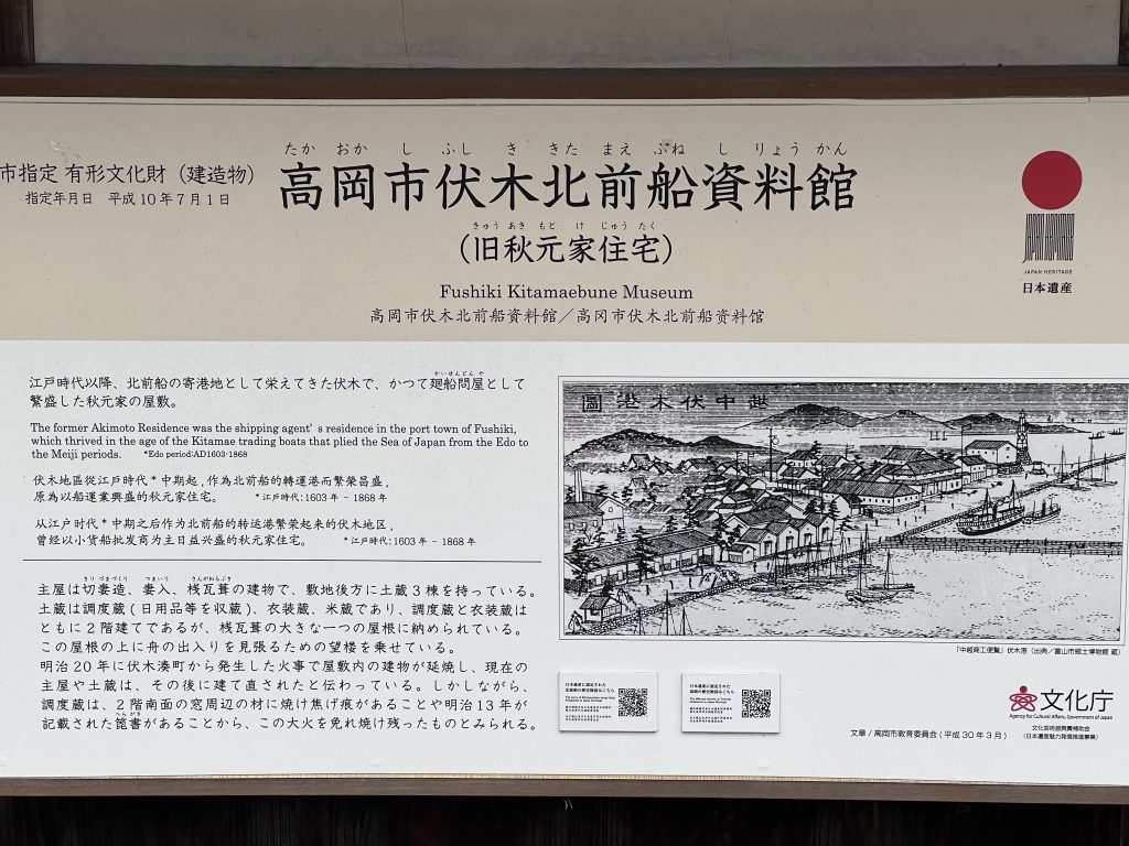 不過這次是從GOOGLE地圖上看到另一個更有興趣的文物館,一間北前船資料館,北前船是日本從江戶時期中期開始,一條大阪經由瀨戶內海、山陰、北陸、東北到北海道的一條西迴航線,堪稱是日本的大航海時代一樣,藉由載運不同地方物產到處販賣賺取價差利益的致富航線,也因為富山是航線的中間樞紐之一,許多的貨物貿易交流也影響了富山的文化,像是不產昆布的富山卻是當今昆布消費量前幾名的縣市,原因正是因為當年北前船的大宗貨物之一就是昆布,而繁盛的貿易就把昆布帶進了富山的飲食文化之中