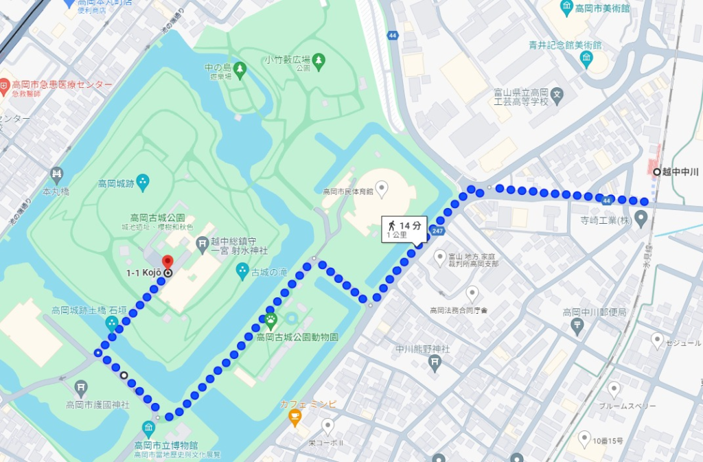 離開神社後前往車站的路上是沿著高岡城跡走的,沿路上的景點不少,如高岡市立博物館跟美術館,有興趣都可以去參觀看看