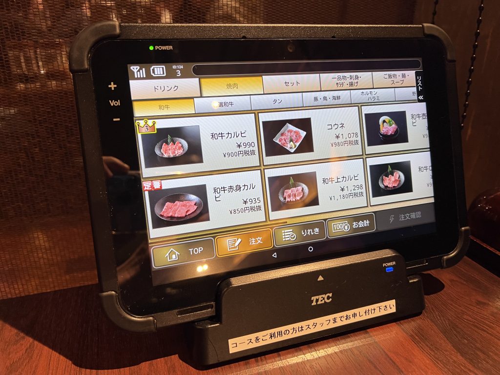 點餐都是用這個平板點,所以也不用擔心點餐上有溝通障礙,不過因為肉的部位幾乎全部都是用片假名,如果不熟的話也可以直接找「盛合」的選項點,就是選拼盤的意思~菜單可以參考官網