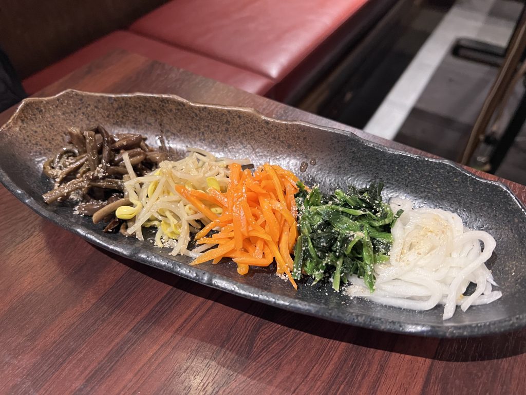 小菜風格比較偏韓式,有山菜、豆芽、紅蘿蔔等等,拿來爽口用的