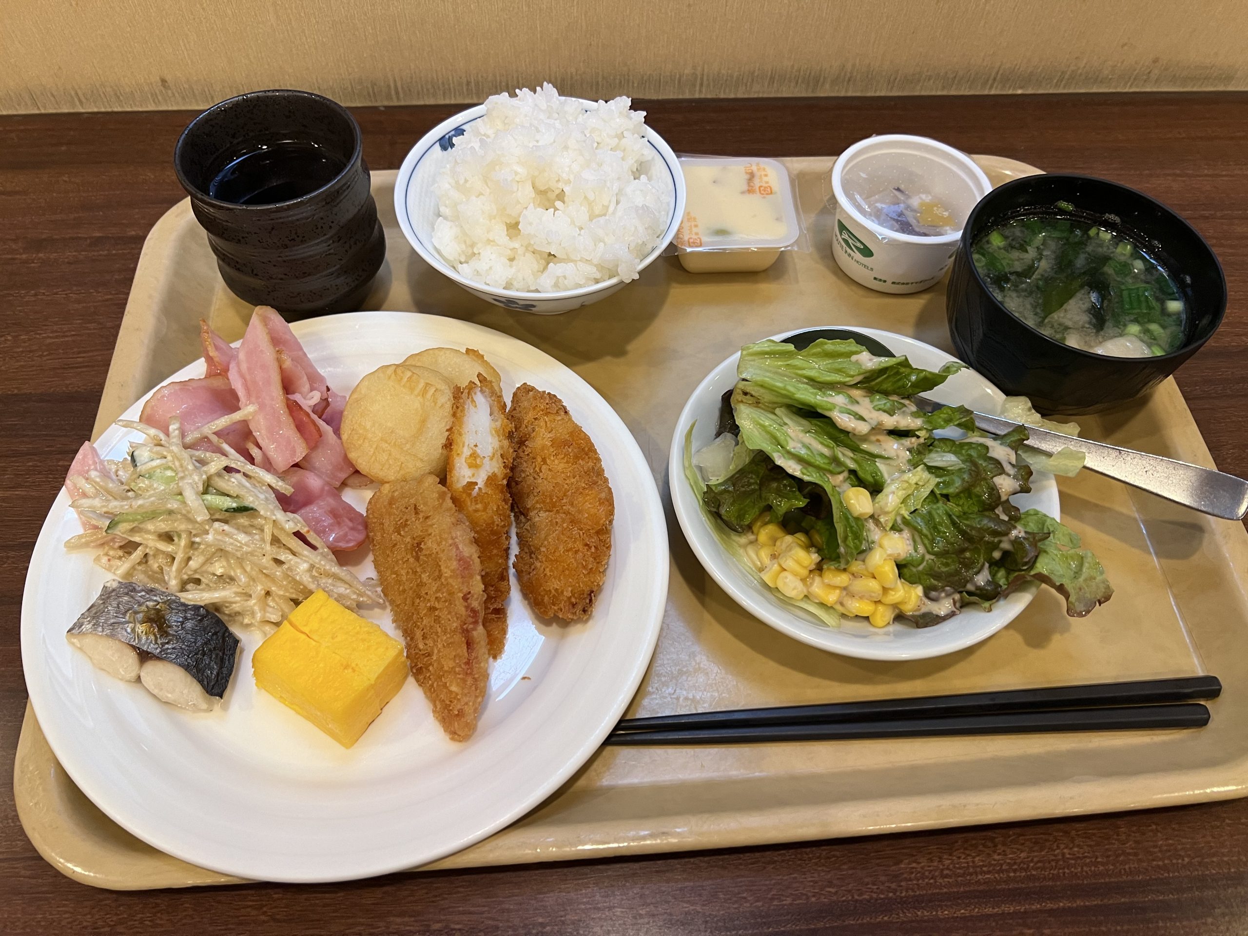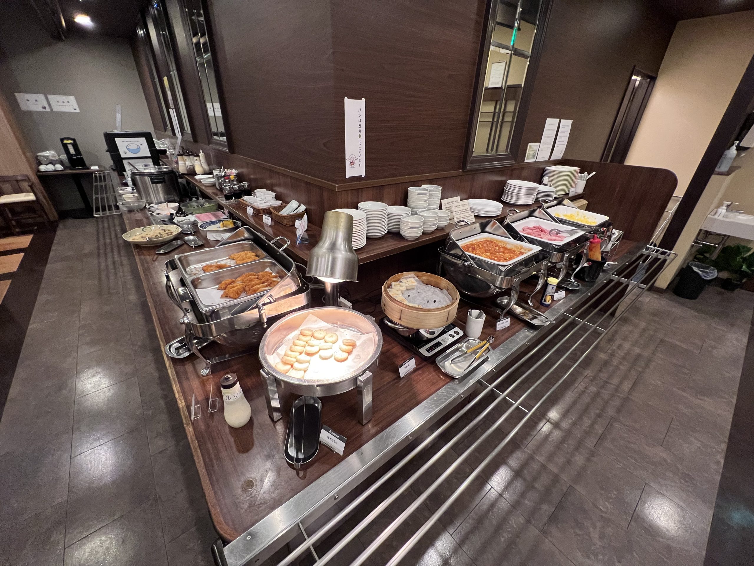 菜色選擇不少~以商務旅館免費早餐來說還算豐盛