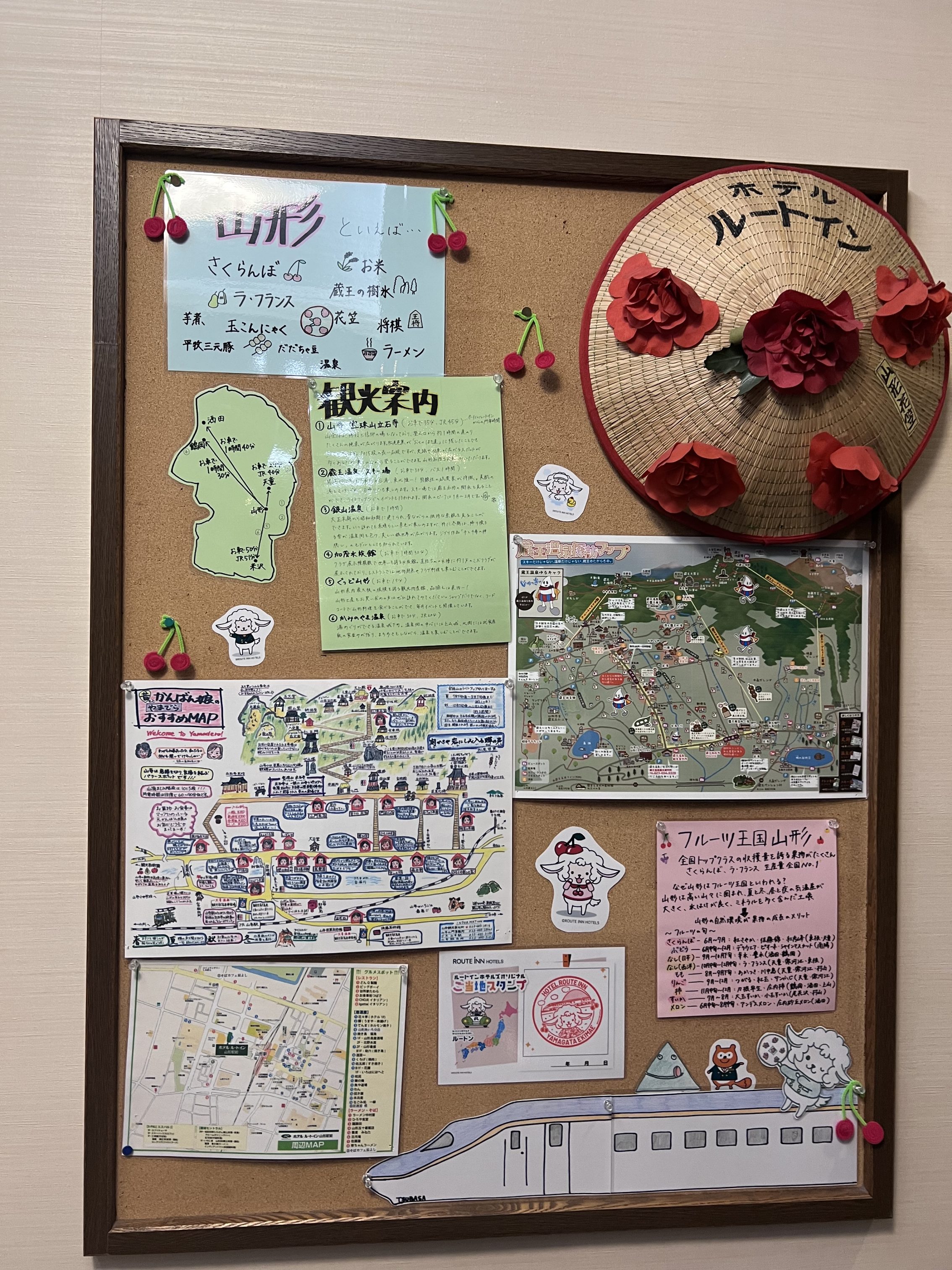 電梯旁有一些觀光資訊可以參考~用了山形的特產櫻桃做裝飾