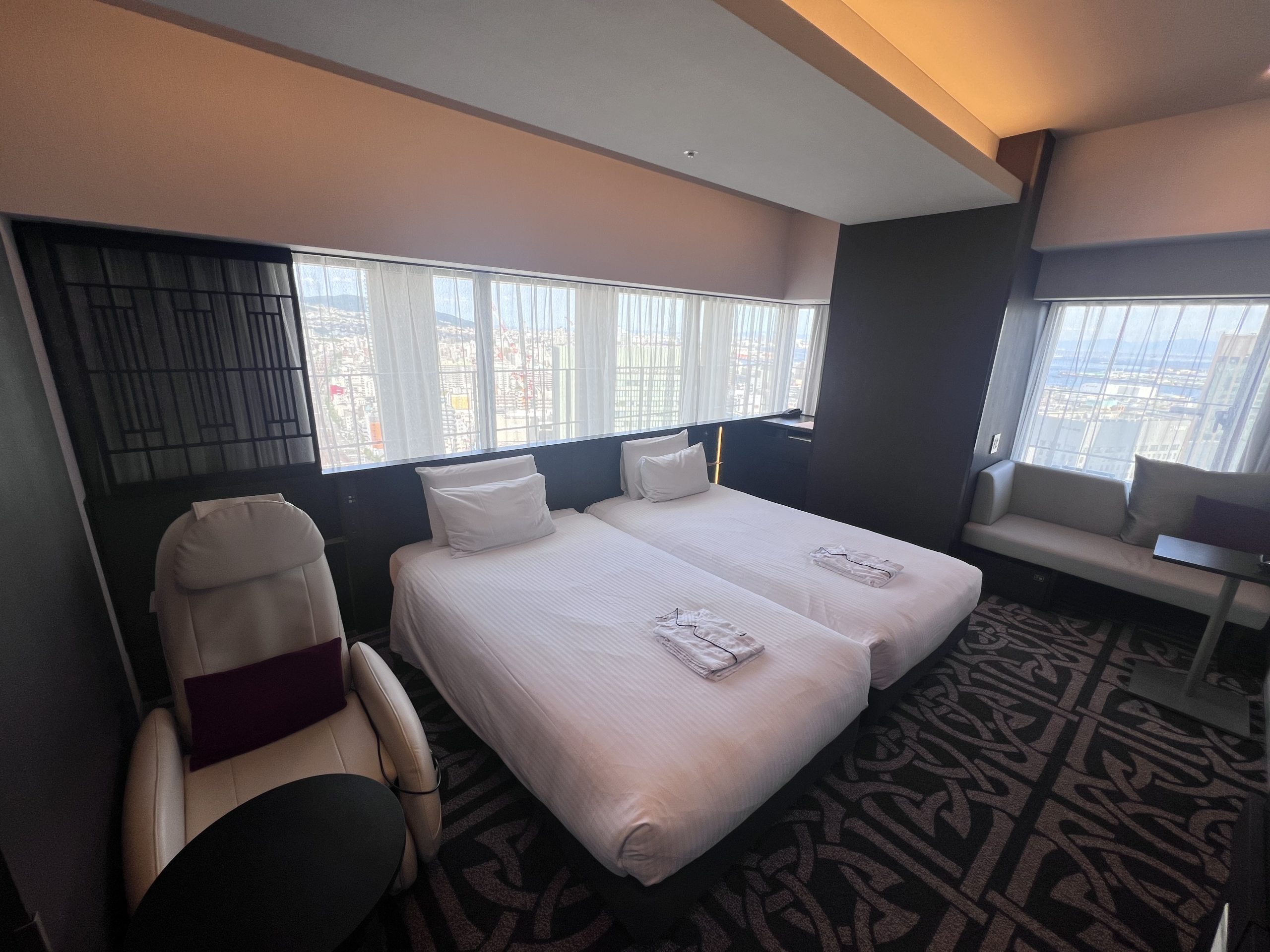 這次入住的是兩床雙人房,面朝大阪一側,一層兩間
