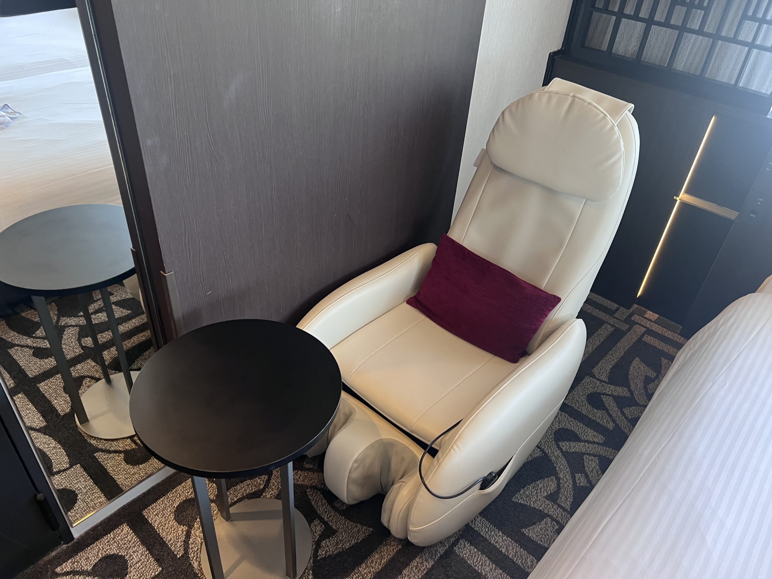 此外這個房型配有一個簡易的按摩椅~可以好好的按腿放鬆一下