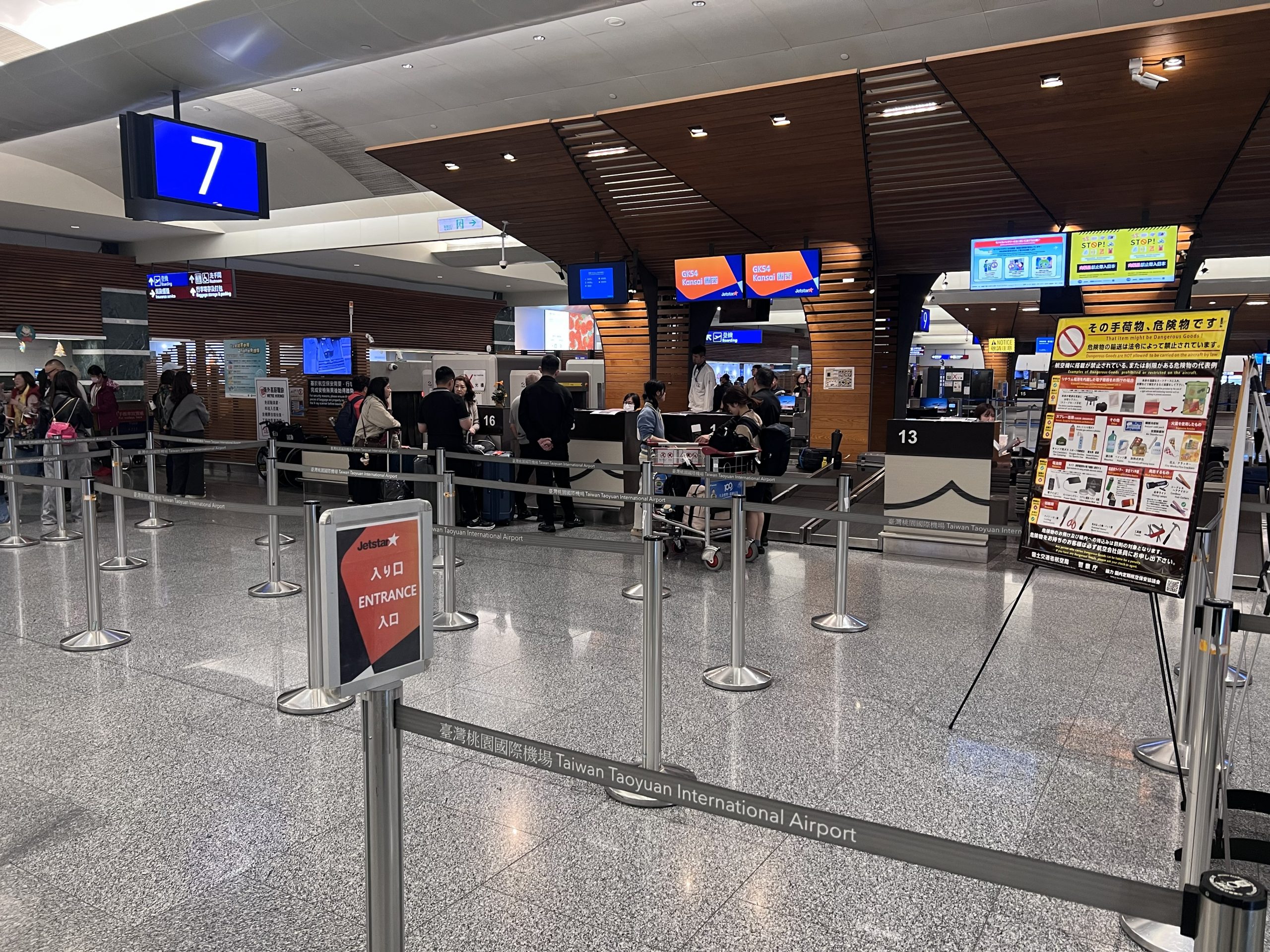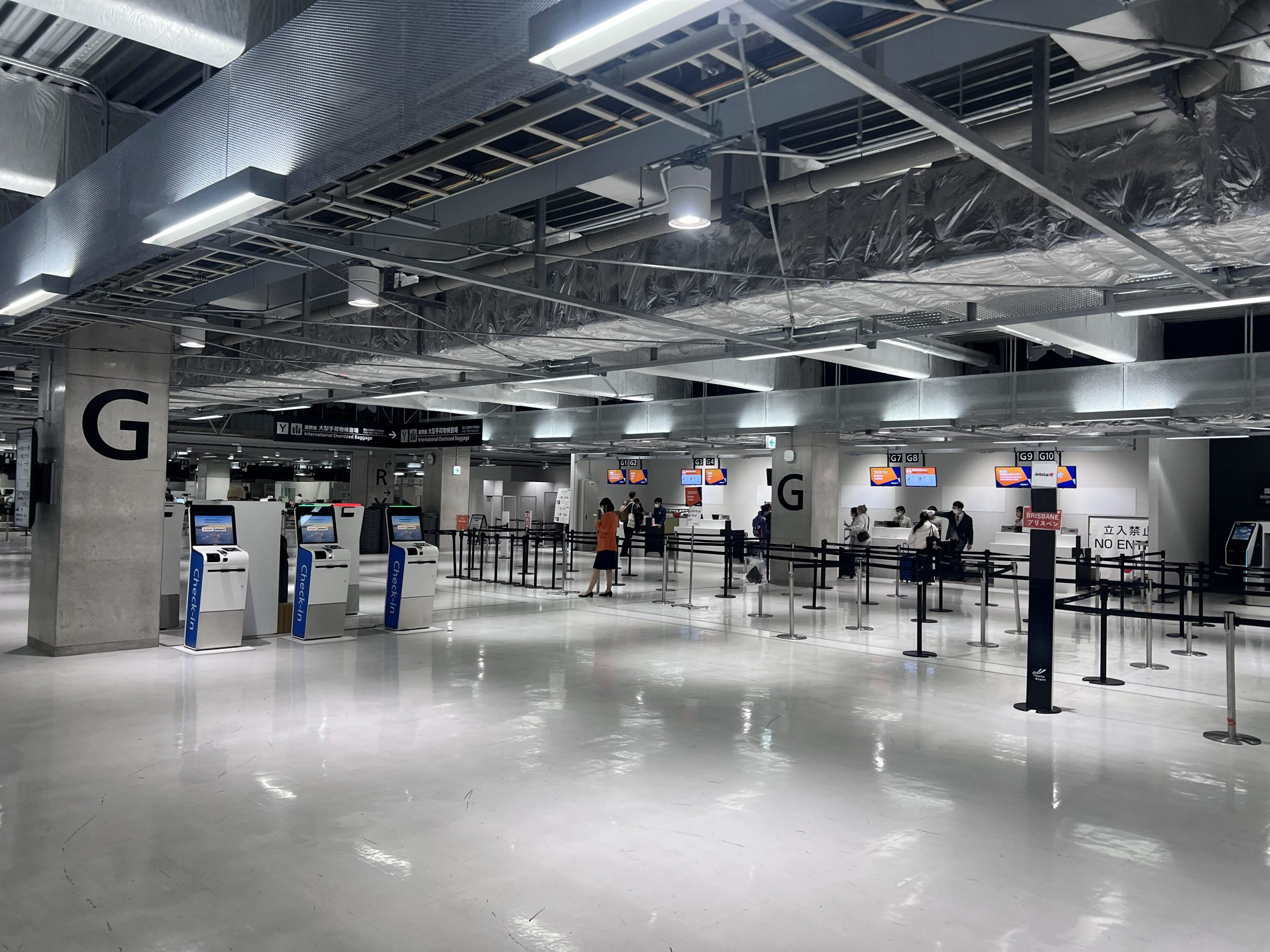 捷星在航廈內分報到櫃台有分流,國際航班要到G區報到