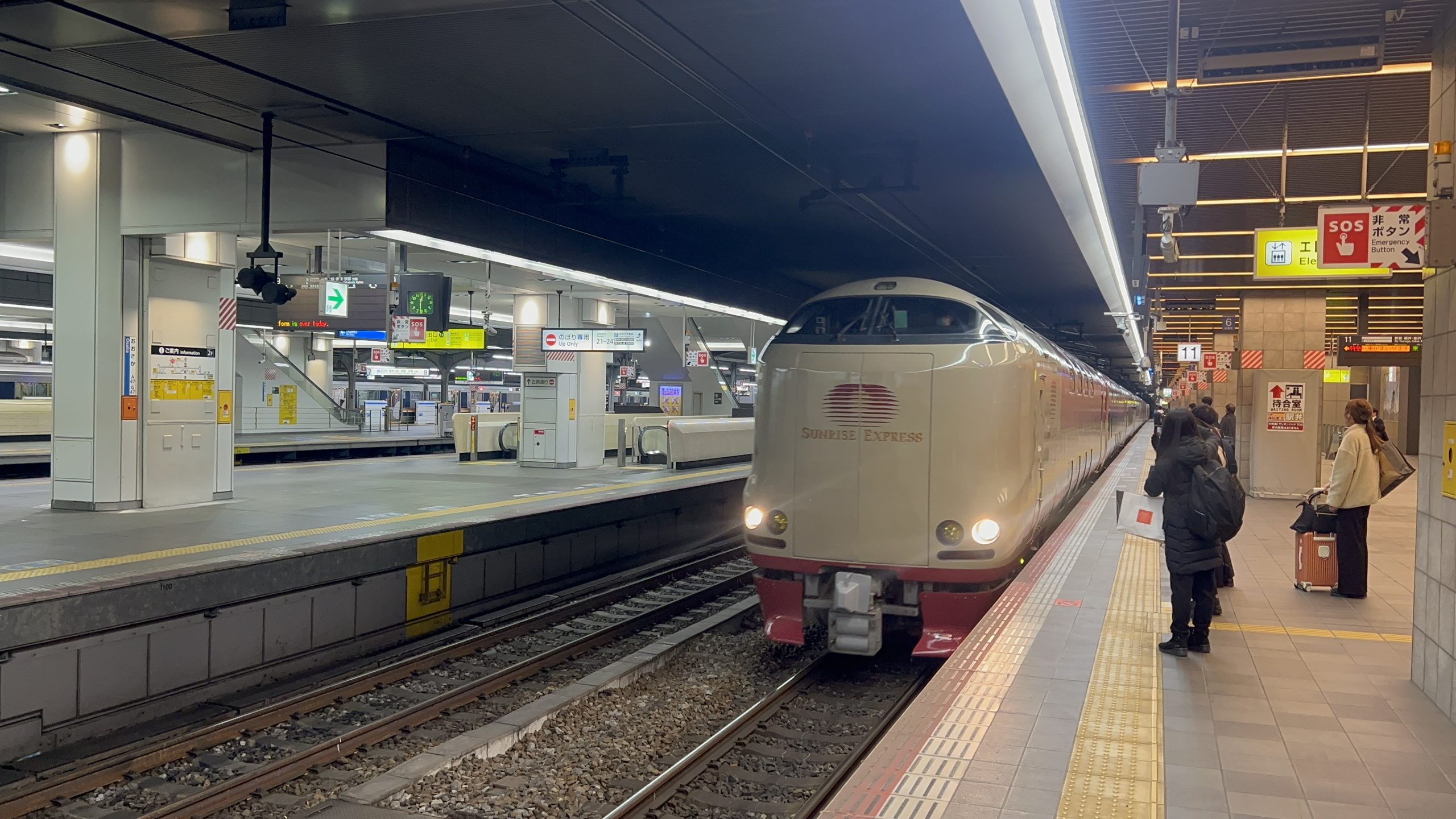 大阪站搭乘Sunrise的月台是最邊邊的11番線