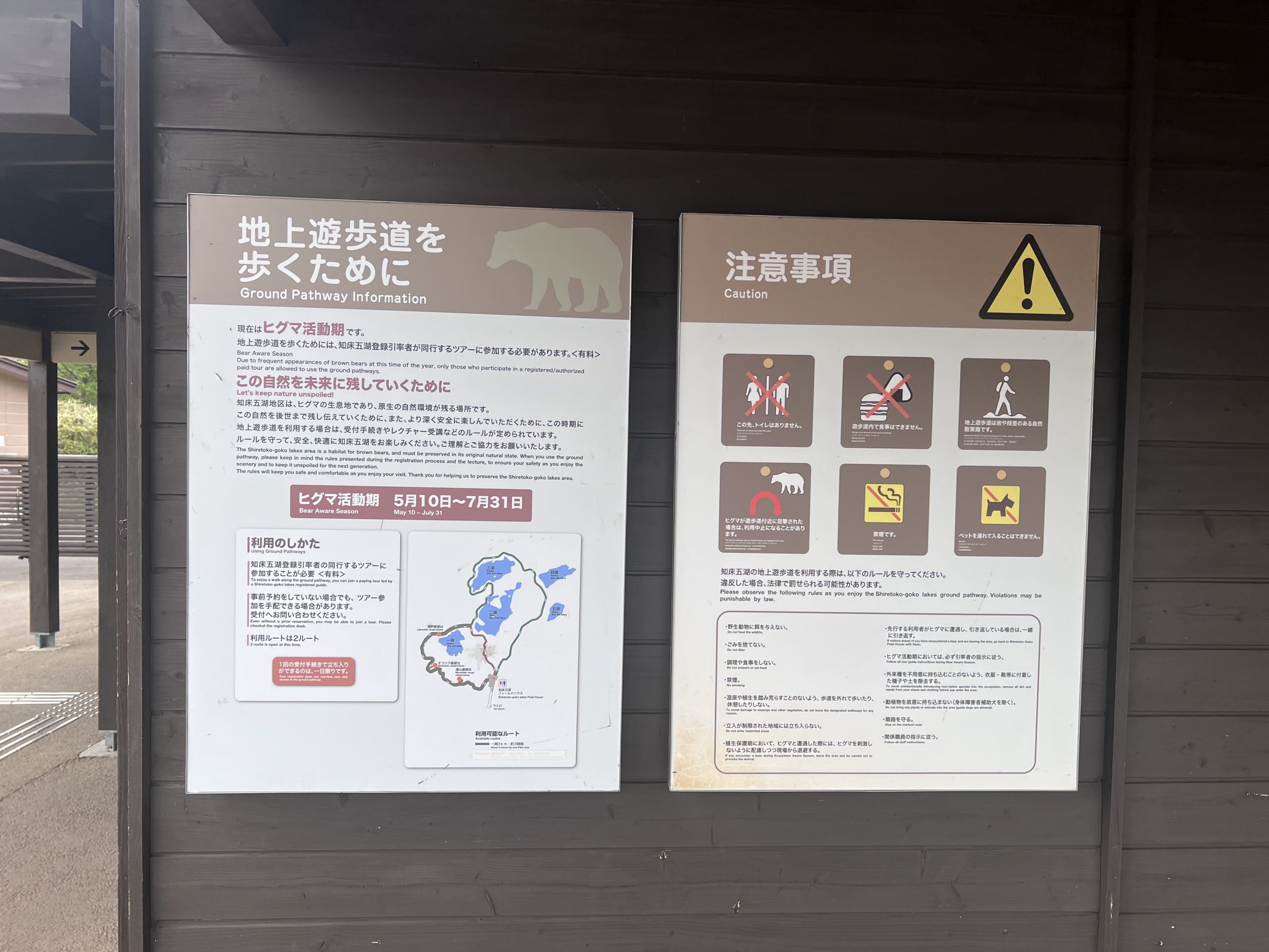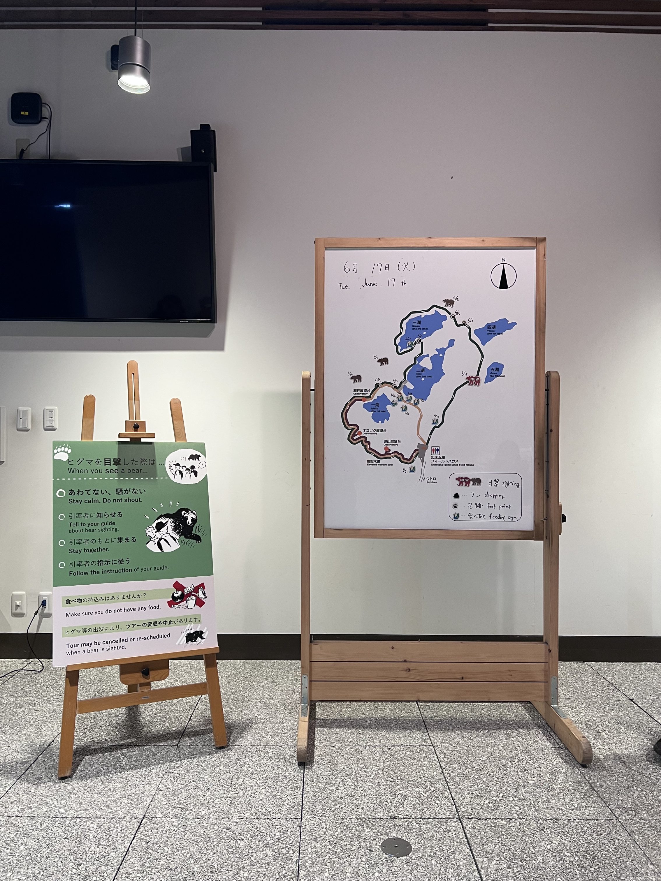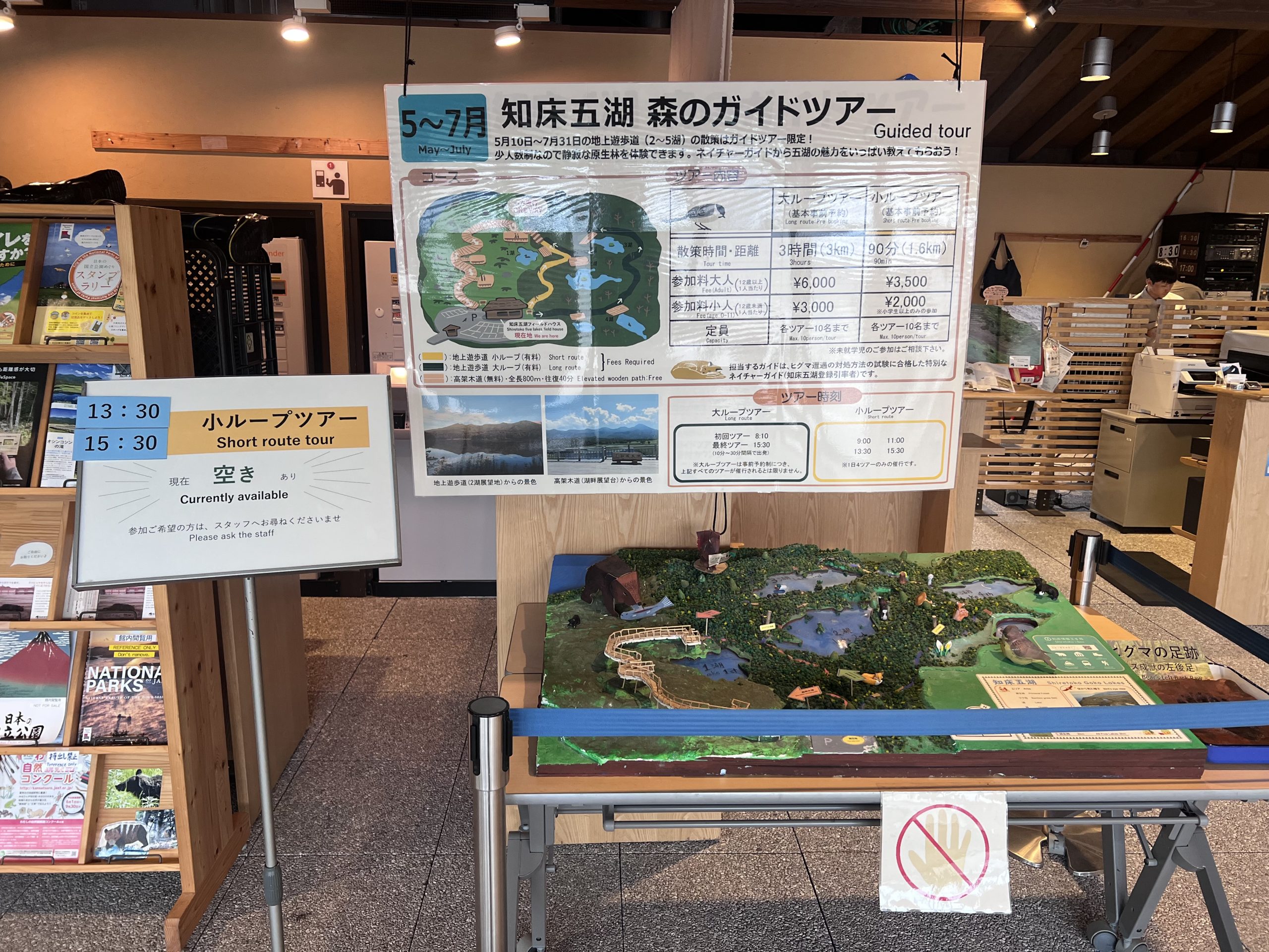 在旅客中心內有知床五湖地形圖、相關環境介紹、熊出沒資訊以及熊的等比圖樣等資訊,也可以在這邊諮詢是否有團可以現場參加