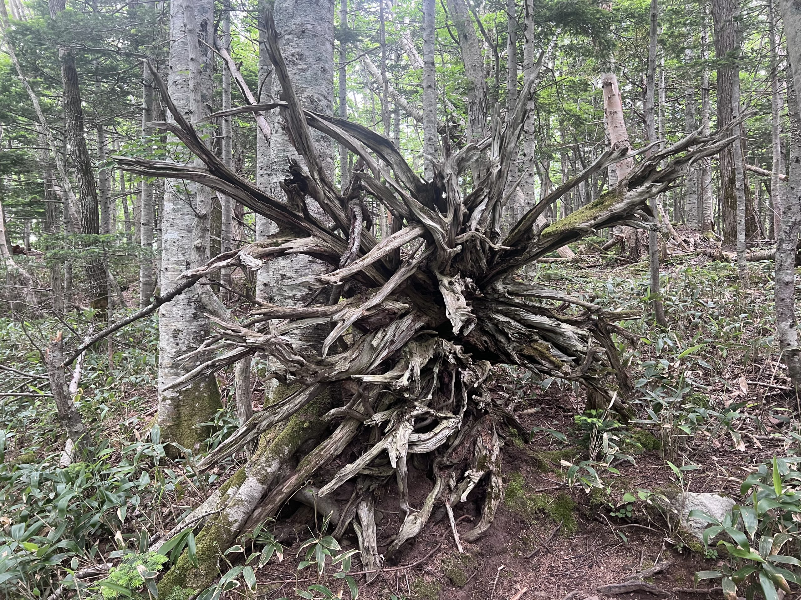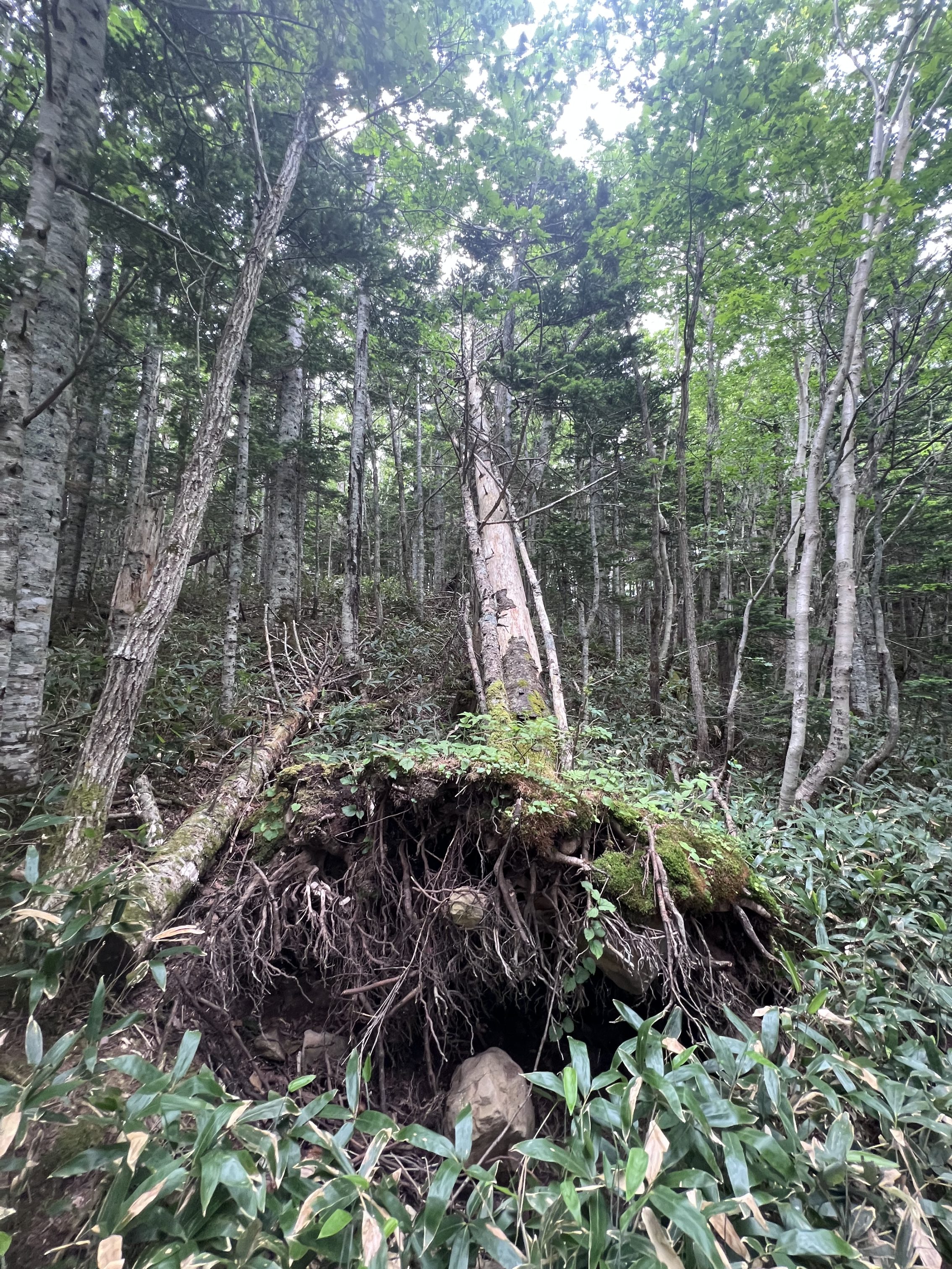 ▲受到地形風影響被連根拔起的樹木